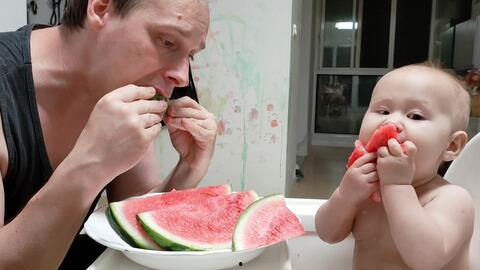 我瞪大了眼睛,好奇地问:“真的吗?爸爸,怎么吃瓜啊?”
